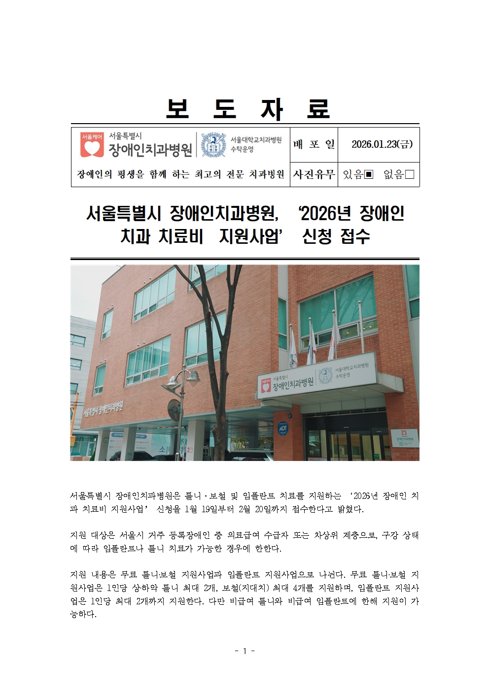 서울특별시장애인치과병원의 진료시간표를 확인할수 있습니다