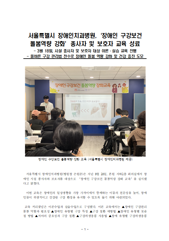 서울특별시장애인치과병원의 진료시간표를 확인할수 있습니다